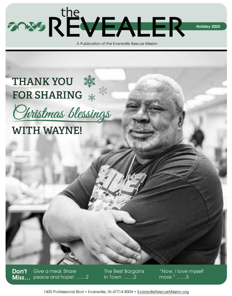 This Christmas, Wayne is experiencing the gifts of peace and hope for a brighter future. Thank you for sharing the blessings of God’s love with him! “I’m thankful to the Evansville Rescue Mission because of the care they have provided me.”